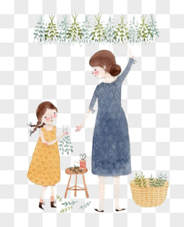 手绘卡通母亲节温馨可爱简约母女互动双人小清新