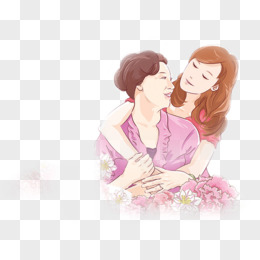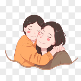 母亲节妈妈温柔的抱着孩子卡通免抠元素