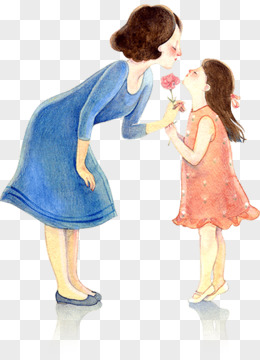 母亲节母女亲人亲情卡通团圆妈妈幸福开心温馨花朵