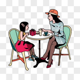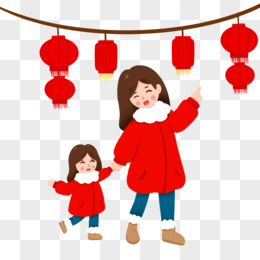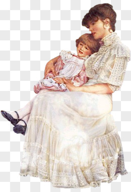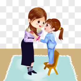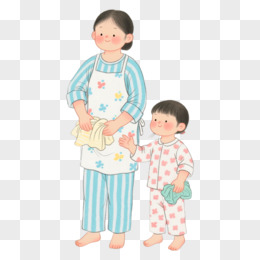卡通手绘免抠妈妈和孩子温馨画面元素