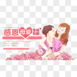 母亲节妈妈开心的接过孩子送的花免抠元素