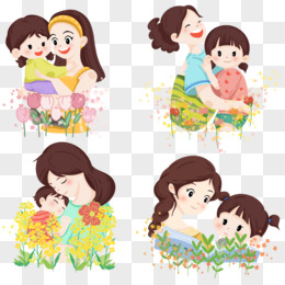 母亲节妈妈温柔的抱着孩子卡通免抠元素