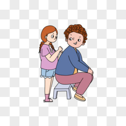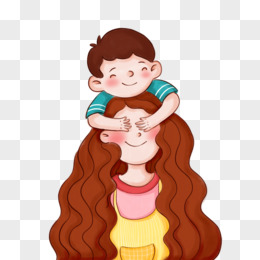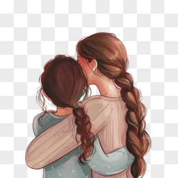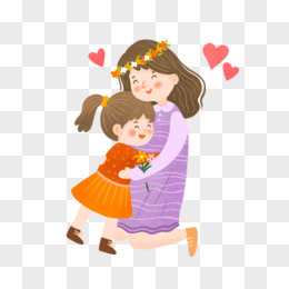 卡通手绘免抠母女温馨画面素材