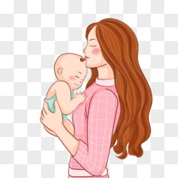 手绘卡通妈妈抱着孩子免抠元素