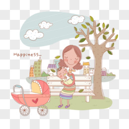 卡通手绘妈妈哺育婴儿免抠元素