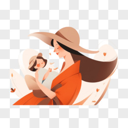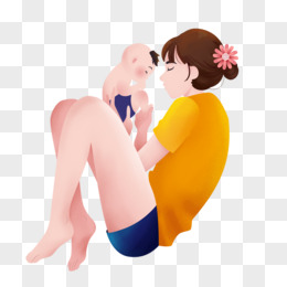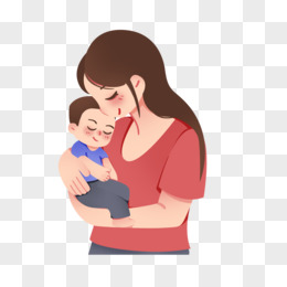 母亲节妈妈温柔的抱着孩子卡通免抠元素