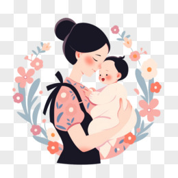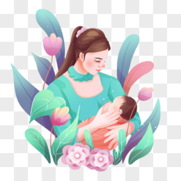 手绘母亲哺喂婴儿鲜花组合免抠元素