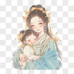 古风母亲环抱孩子元素