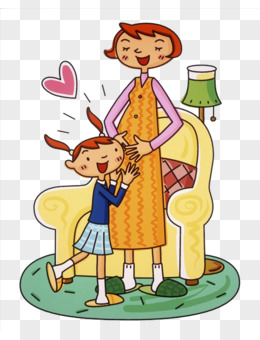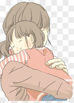 手绘卡通女儿拥抱妈妈插画免抠元素