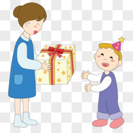手绘卡通女儿亲吻妈妈创意照片免抠元素