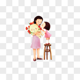 手绘插画女儿送礼物给妈妈插画免抠元素