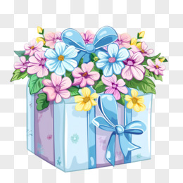 手绘卡通蓝色蝴蝶结礼盒母亲节小清新免扣元素