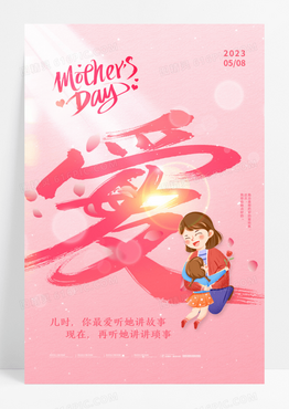 粉色简约母爱字体母亲节创意海报