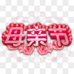 粉色花朵爱心设计我爱妈妈母亲节字体