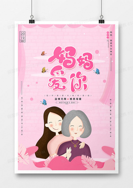 手绘母亲节妈妈拥抱女儿温馨画面合成元素