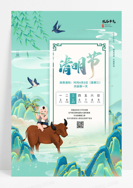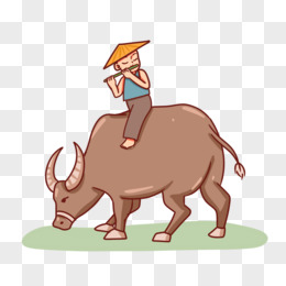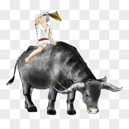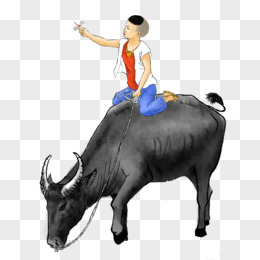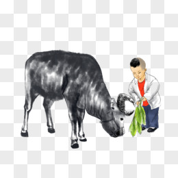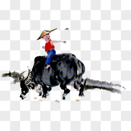 手绘水彩柳树发芽牧童牧牛场景免抠元素