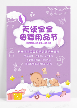 唯美紫色卡通天使宝宝母婴节用品创意海报设计