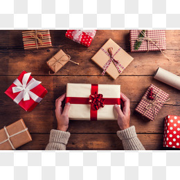 红色礼盒木桌壁纸
