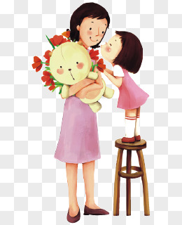 母亲节儿子给妈妈送鲜花免抠元素