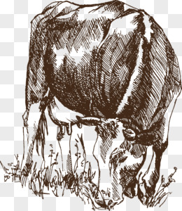 手绘奶牛吃草