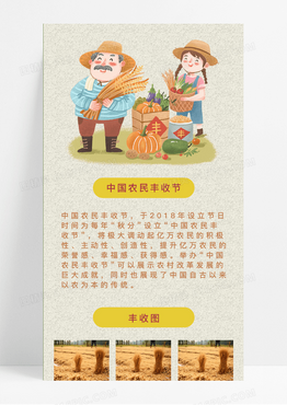 黄色卡通的农民丰收节手机长图