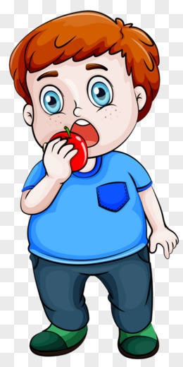 卡通手绘男孩狂啃食美味人物形象元素