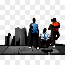 橙黑色剪影一个男孩在弹吉他唱歌免抠元素