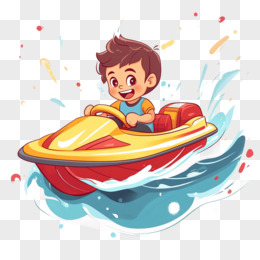 可爱卡通风格夏日开摩托艇的男孩免抠元素