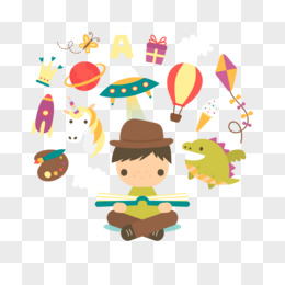 3D立体风格坐在书山看书的可爱男孩免抠元素