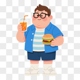 卡通手绘可爱胖男孩吃汉堡免抠元素