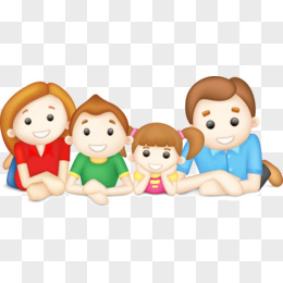 卡通手绘男孩女孩坐在桌布上免抠元素