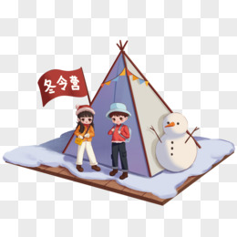 手绘寒假男孩女孩户外营地驻扎免抠元素