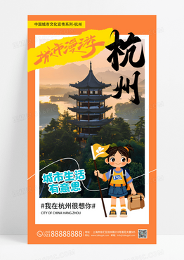 橙色简约杭州城市地标旅游宣传海报