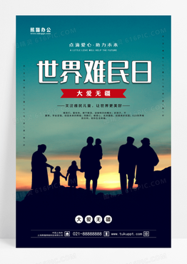 蓝色实景世界难民日海报设计