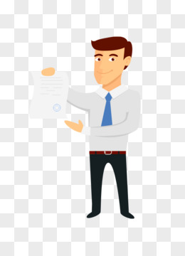 手绘卡通穿西装的男人拿着业绩表免抠元素