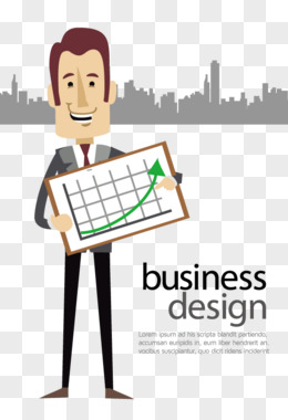 手绘卡通穿西装的男人站在业绩表前免抠元素
