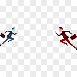 手绘卡通穿灰色西装的男人沿着箭头奔跑免抠元素