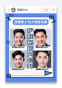男士护肤秘籍大公开小红书视频配图封面手机海报