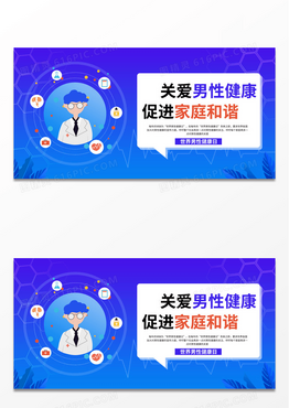 蓝色卡通风格关爱男性健康促进家庭和谐男性健康宣传展板设计世界男性健康日展板