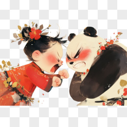 卡通水墨风闹脾气元素
