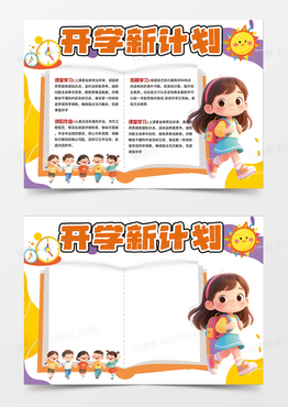 开学新计划可爱插画简约设计闹钟撞色手抄报