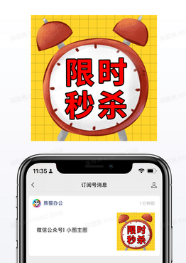 黄红色闹钟倒计时限时秒杀微信公众号封面小图