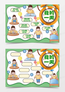 绿色闹钟可爱插画设计我的一天边框时间手抄报