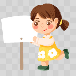 手绘卡通简笔小人手拿牌子边框免抠系列二元素