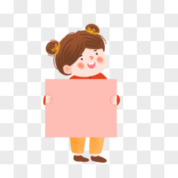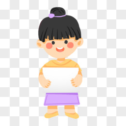 卡通手绘免抠微笑的女孩拿着纸张素材