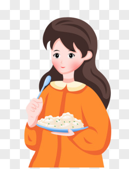 手绘小朋友拿勺子吃饭免抠素材