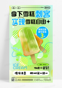 绿色弥散拿下雪糕刺客实现雪糕自由手机宣传海报