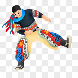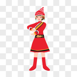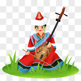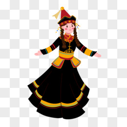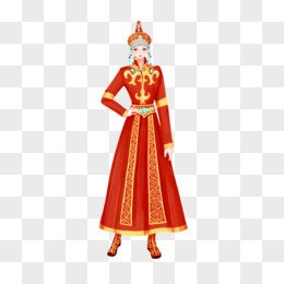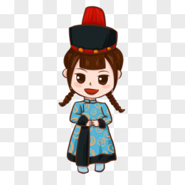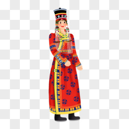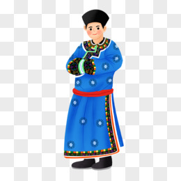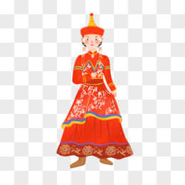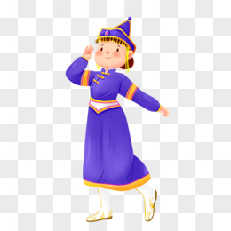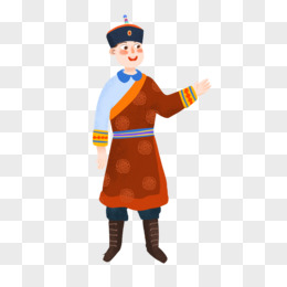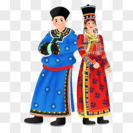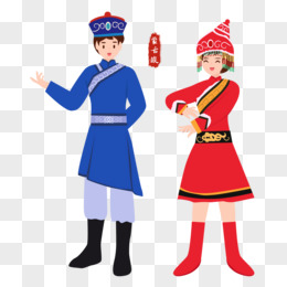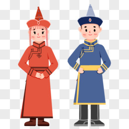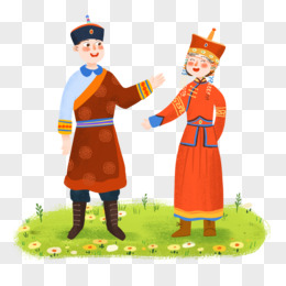 手绘卡通穿传统服饰的蒙古人男女插画免抠元素