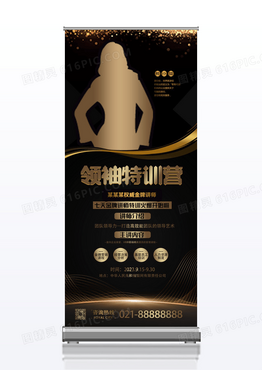 讲座海报人物海报大气黑金微商讲师金牌讲师领袖特训营人物介绍展架