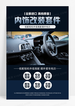 深色简约汽车内饰改装套件活动促销AI摄影图海报